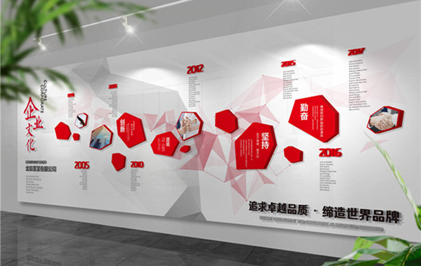第一,关于文化墙设计风格:不同企业组织的理念和文化特质不同,文化墙的风格需要与其相适应,在开始办公室装修时就要明确定位和文化特点, 如果装修风格与自身文化气质不融合